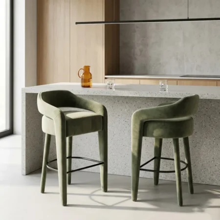 Upholstered bar stools add softness and sophistication to kitchen and dining environments. Lamac offers stylish counter stools with premium upholstery that complements luxury interiors, making them suitable for homes seeking elevated luxury dining furniture solutions.