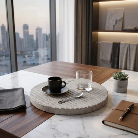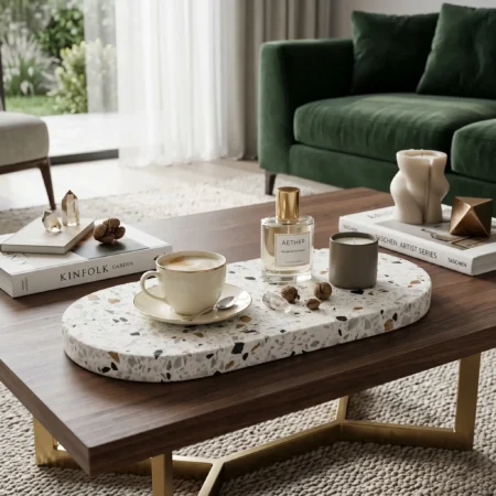 Crafted from high-quality Terrazzo stone, this versatile Tray Table serves multiple purposes. Use it as a bathroom tray to organize your cosmetics or as a stylish fruit tray for serving guests. It can also double as a jewelry tray on your dressing table, or a perfume tray to display your