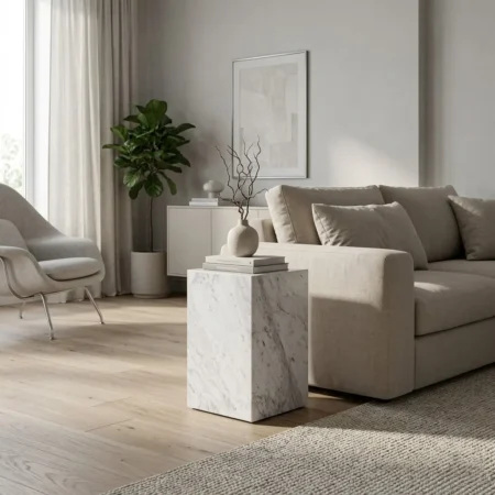 White marble block side table