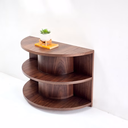 Sculptural and refined, the Brunello End Table is a study in timeless form and function. Crafted from solid wood with a rich, natural finish, it adds quiet elegance to any setting—whether by your sofa, bedside, or workspace. Its clean, rounded design and warm tones make it a standout among stylish end tables.