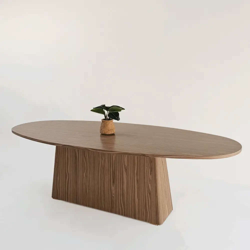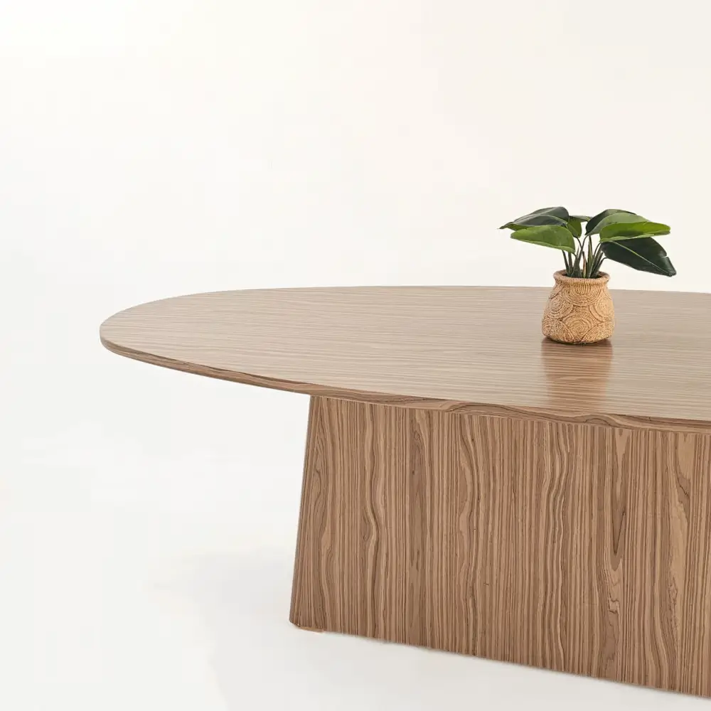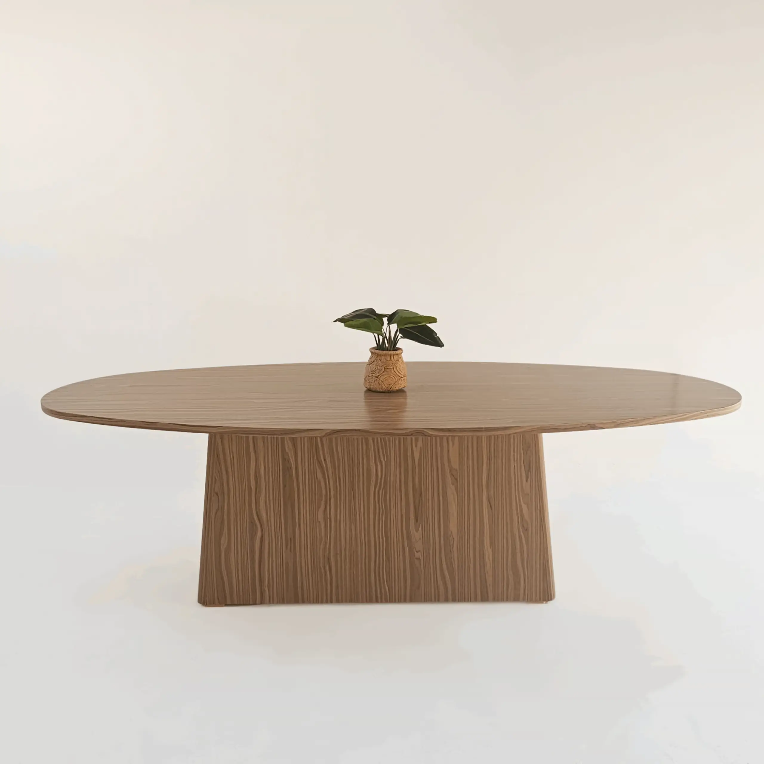 The Celia Dining Table offers a warm, contemporary aesthetic with its clean lines and refined craftsmanship. Made from walnut wood veneer, it showcases a smooth, natural texture that complements modern and minimalist interiors. Measuring 240L × 100W × 76H cm, this spacious table comfortably accommodates family gatherings, dinner parties, and everyday dining, making it a functional and stylish addition to any home.