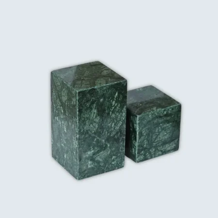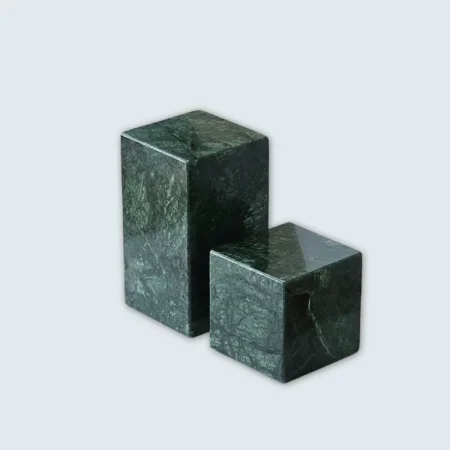 Green Marble Decorative Bookends (Set of 2) Elevate your space with the timeless elegance of the Green Marble Decorative Bookends. Crafted from high-quality, polished marble, these bookends showcase a sleek, minimalist design that complements both modern and classic interiors. The set includes two pieces—one measuring 10×10×10 cm and the other 10×10×17 cm—offering versatility to suit various shelf sizes and styles. Each piece is meticulously handcrafted by skilled artisans at Lamac, ensuring unique veining and a flawless finish. Beyond their functional purpose, these bookends serve as sophisticated decor accents, perfect for organizing books or adding a touch of luxury to any room. Whether placed in a living room, study, or office, they make an ideal gift for book lovers and design enthusiasts alike.