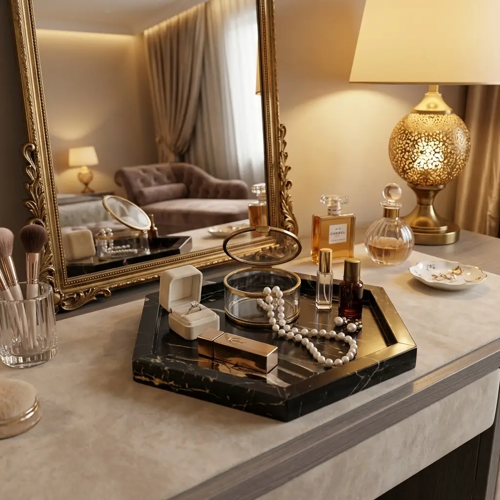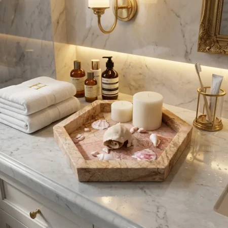 - USAGE: This tray made with 100% marble has multipurpose uses as it can be used in bathroom as vanity tray or as a fruit serving tray or as a storage organizer for your cosmetics on dressing table.