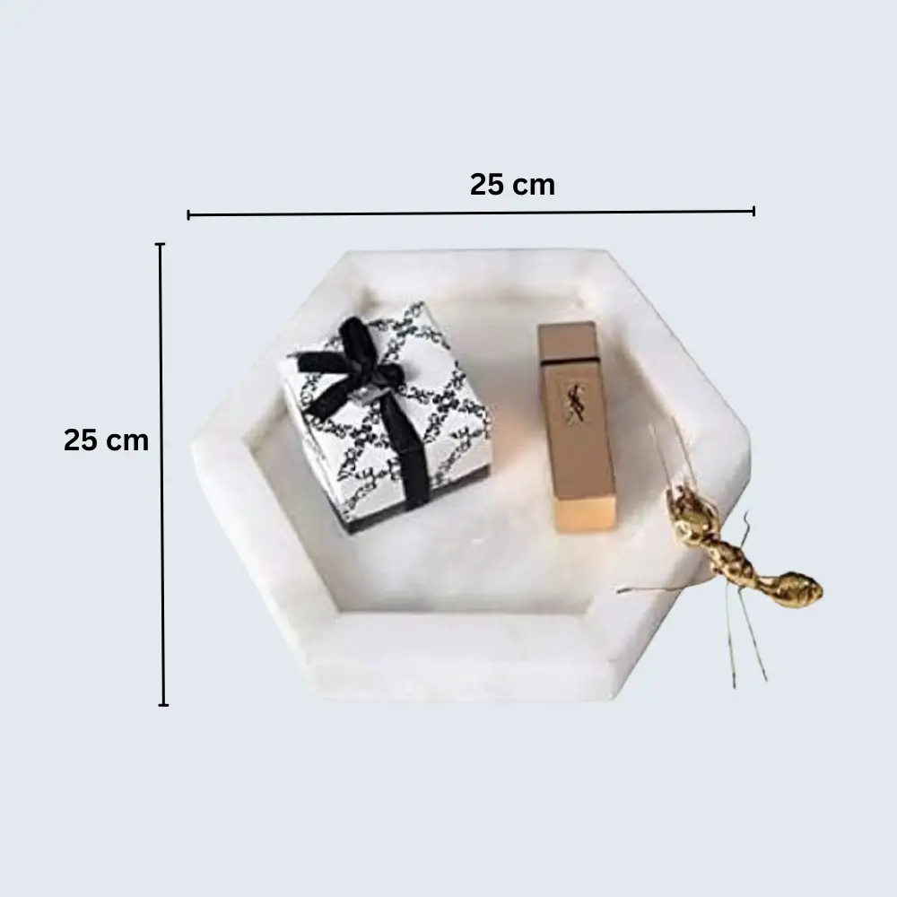 Material: Marble Shape: Hexagonal Product dimensions: 25L x 25W x 3H centimeters Tray type: Bathroom tray