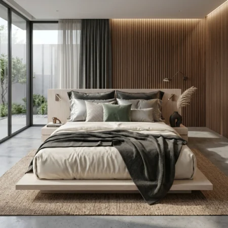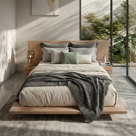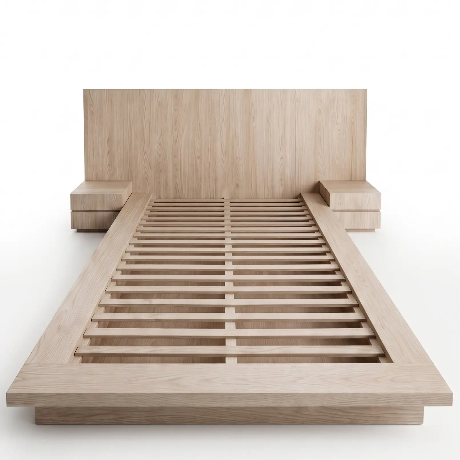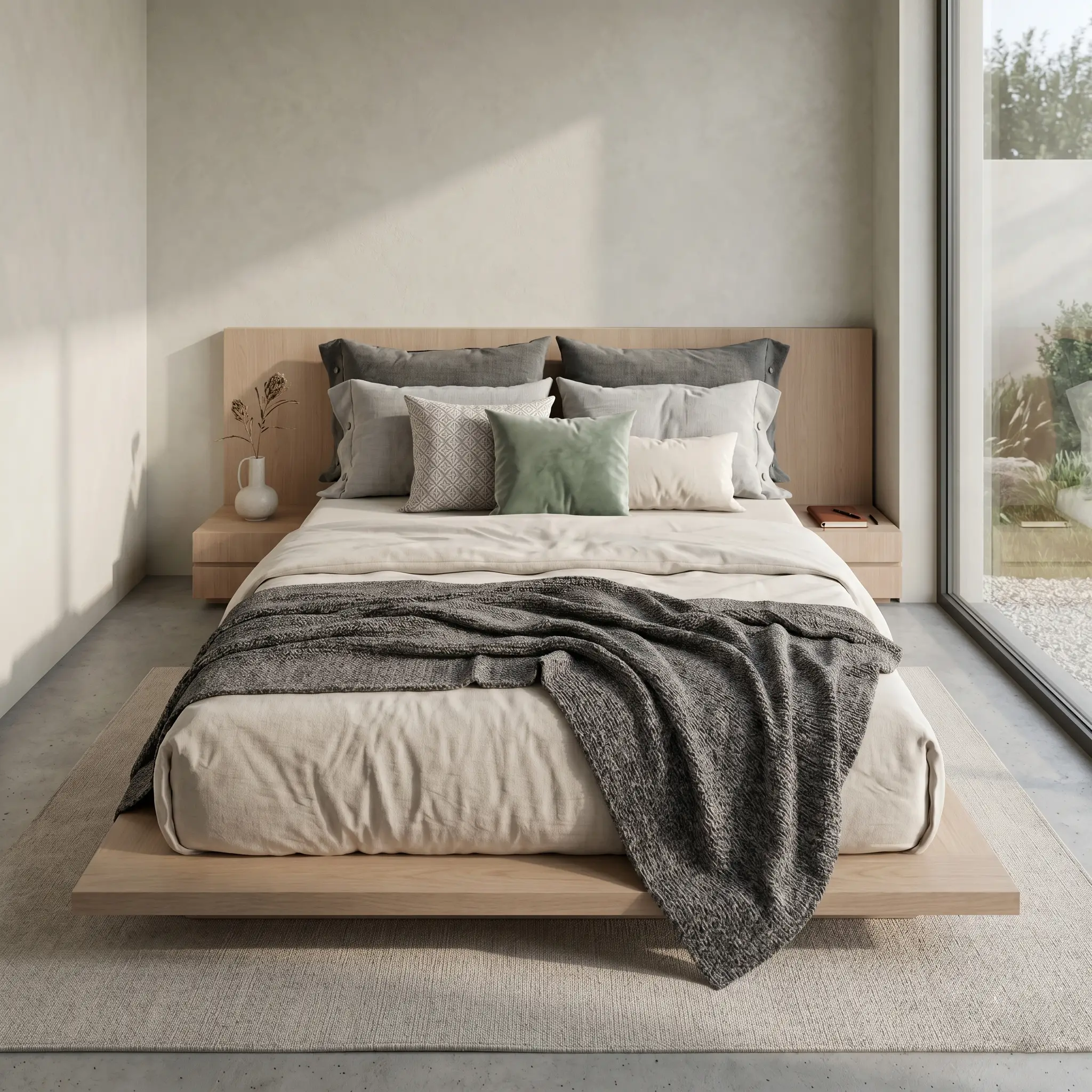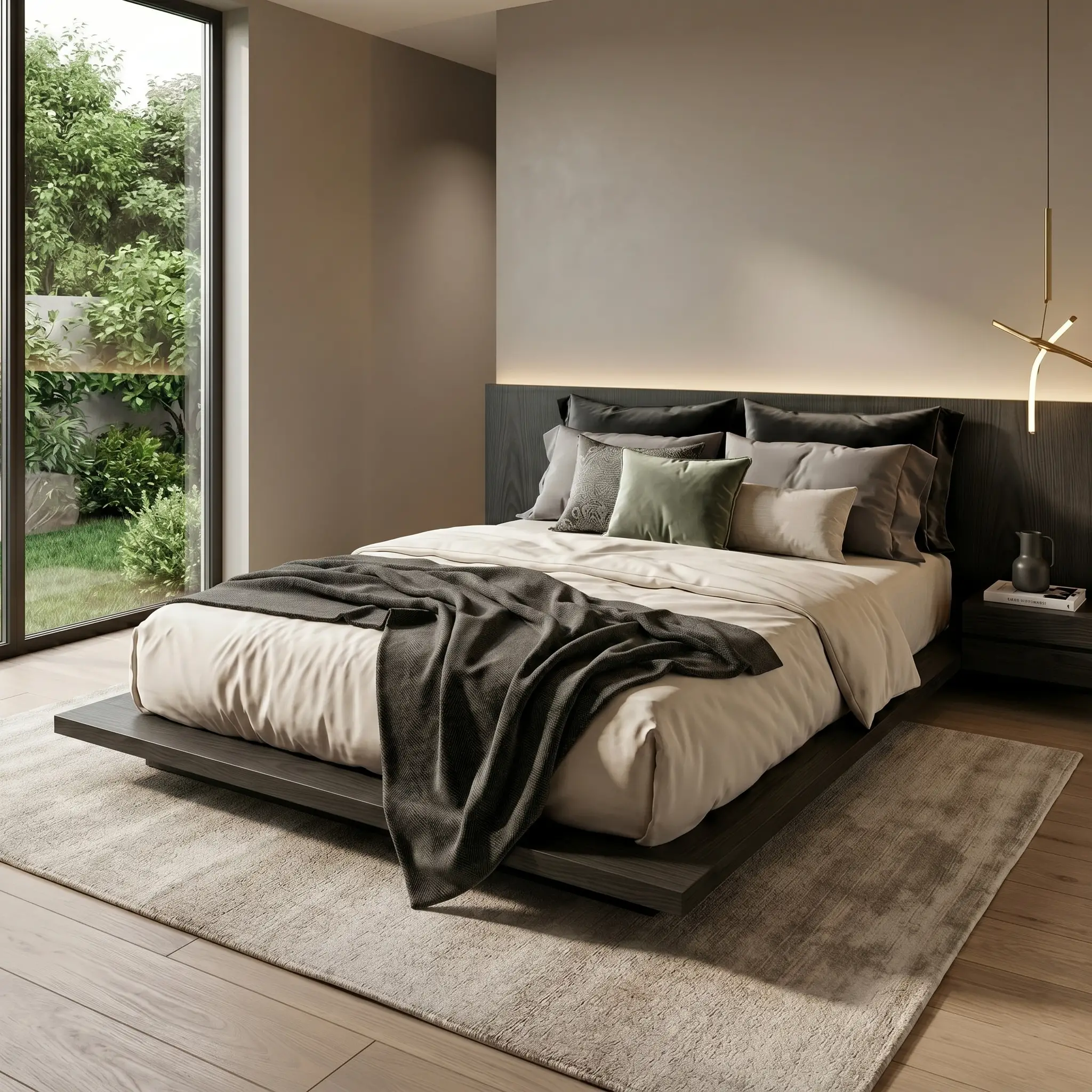 The Linea Platform Bed is a refined expression of Japanese styled Japandi themed modern minimalism, designed to bring warmth and balance to contemporary bedrooms. Defined by its clean lines and low-profile silhouette, this bed seamlessly integrates functionality with elegant design.