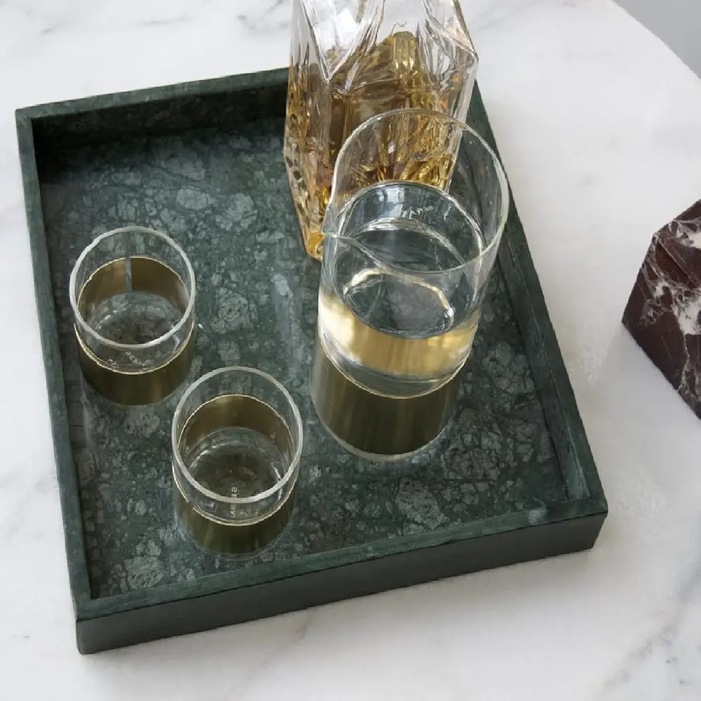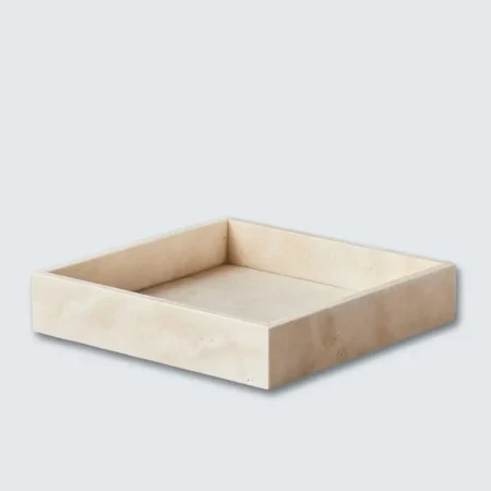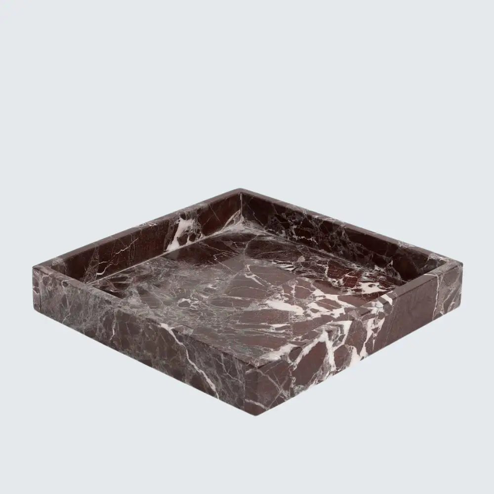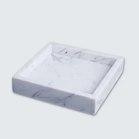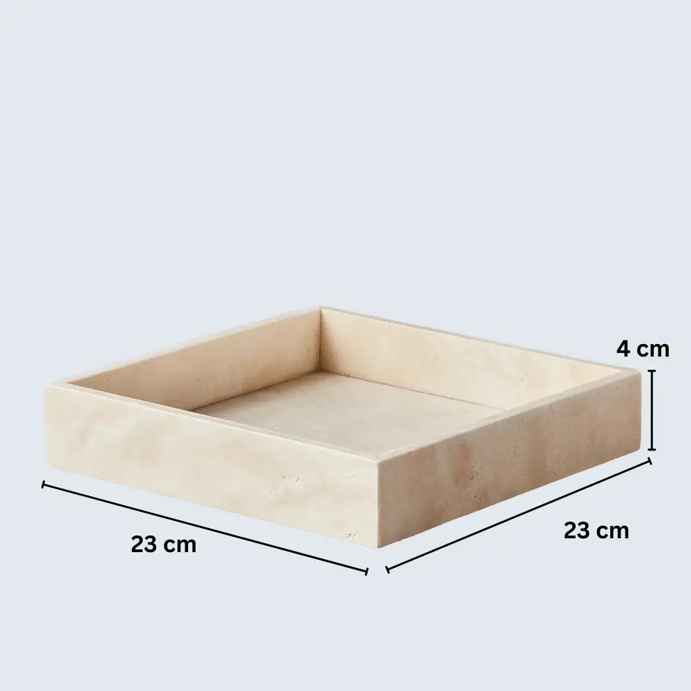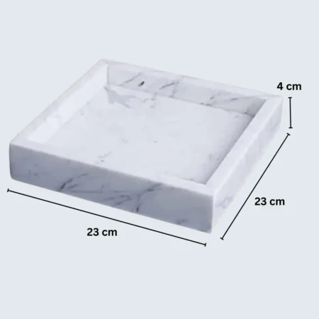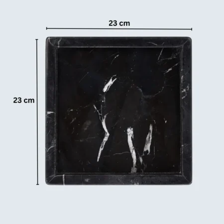 Marble Border Tray The Marble Border Tray is a versatile and elegant piece that seamlessly blends functionality with aesthetic appeal. Crafted from premium marble, each tray is unique due to the natural veining and patterns inherent in the stone. With dimensions of 23 cm x 23 cm and a thickness of 2 cm, it serves as an ideal platform for displaying perfumes, candles, or cosmetics on your vanity, or as a chic serving tray for fruits and nuts. Available in Beige, Black, Burgundy, Green, and White, this handcrafted tray adds a touch of sophistication to any space.