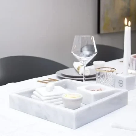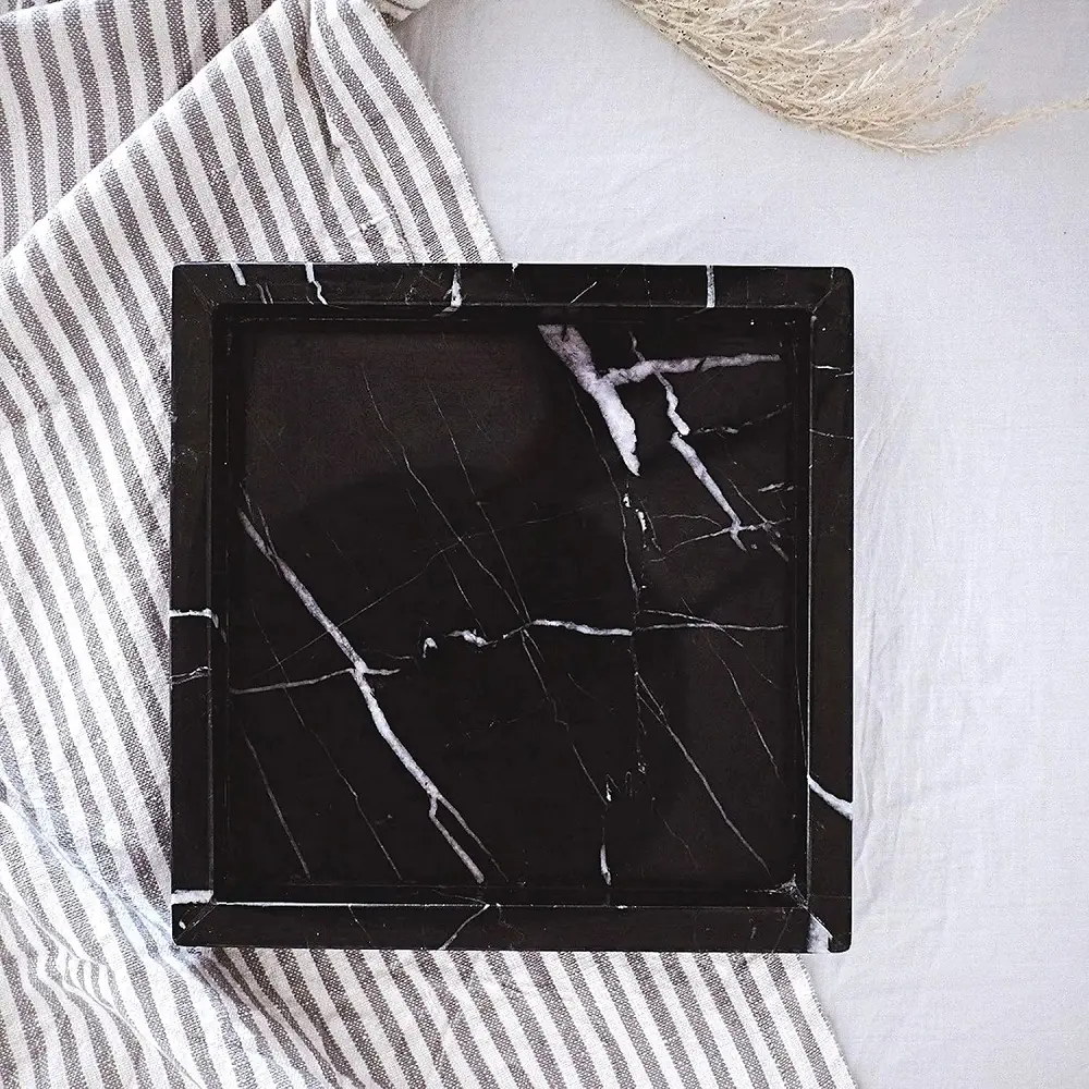 This square marble tray adds a touch of luxury to my console table. Perfect for displaying candles or perfumes.