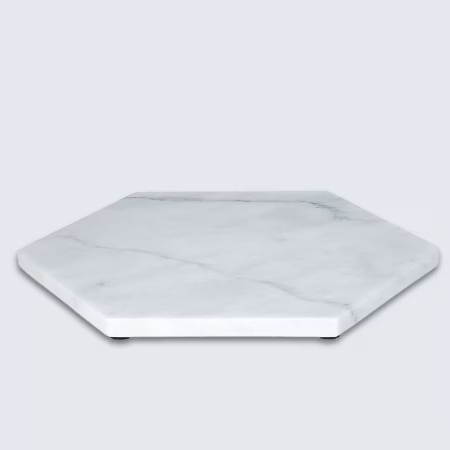 Handcrafted by our skilled artisans at Lamac Crafts, this exquisite marble cutting board is truly one of a kind, with each piece showcasing unique natural variations in the marble. This stylish cutting board doubles as a cheese serving platter, perfect for presenting cheese, fruit, or desserts at your next dinner party. The oblong design is not only practical but also adds a contemporary touch to your table. It can be used as both a serving platter and a cutting or chopping board, making it versatile for all your kitchen needs. With its hexagonal shape, this cheese serving platter brings an elegant flair to any occasion.