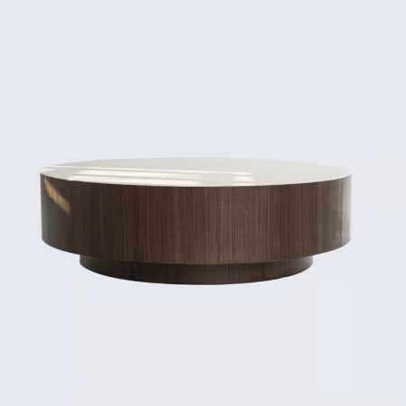 The coffee table combines marble and wood, exuding elegance and sophistication while anchoring any living space with its captivating presence. Its round shape fosters unity and balance, making it ideal for seamless gatherings and conversations. The marble top, with its unique veining patterns, adds a touch of timeless beauty, while the wooden base introduces warmth and texture to its overall aesthetic. Offering ample surface space, it’s perfect for displaying decor or serving refreshments, elevating the ambiance with curated style. The cool marble surface is perfect for resting drinks or keepsakes, enhancing moments of relaxation. Supported by a sturdy wooden base, the table ensures durability and stability, promising lasting beauty and functionality. The size and colors of the marble and wood can be customized to suit your style.