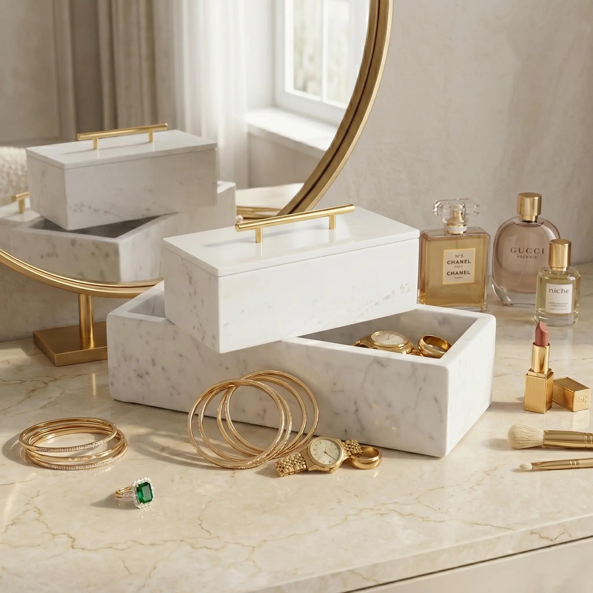 - USES: This rich and classy jewelry box made with 100% marble can be a a stylish piece of art on your dressing room to keep your delicate jewelry or any other tiny items that is otherwise lying around on the table.