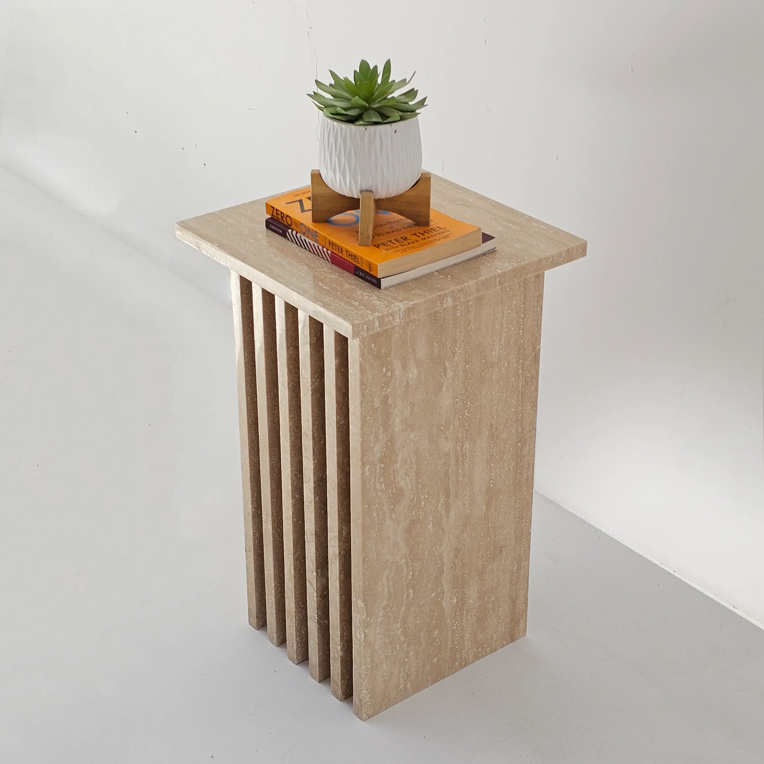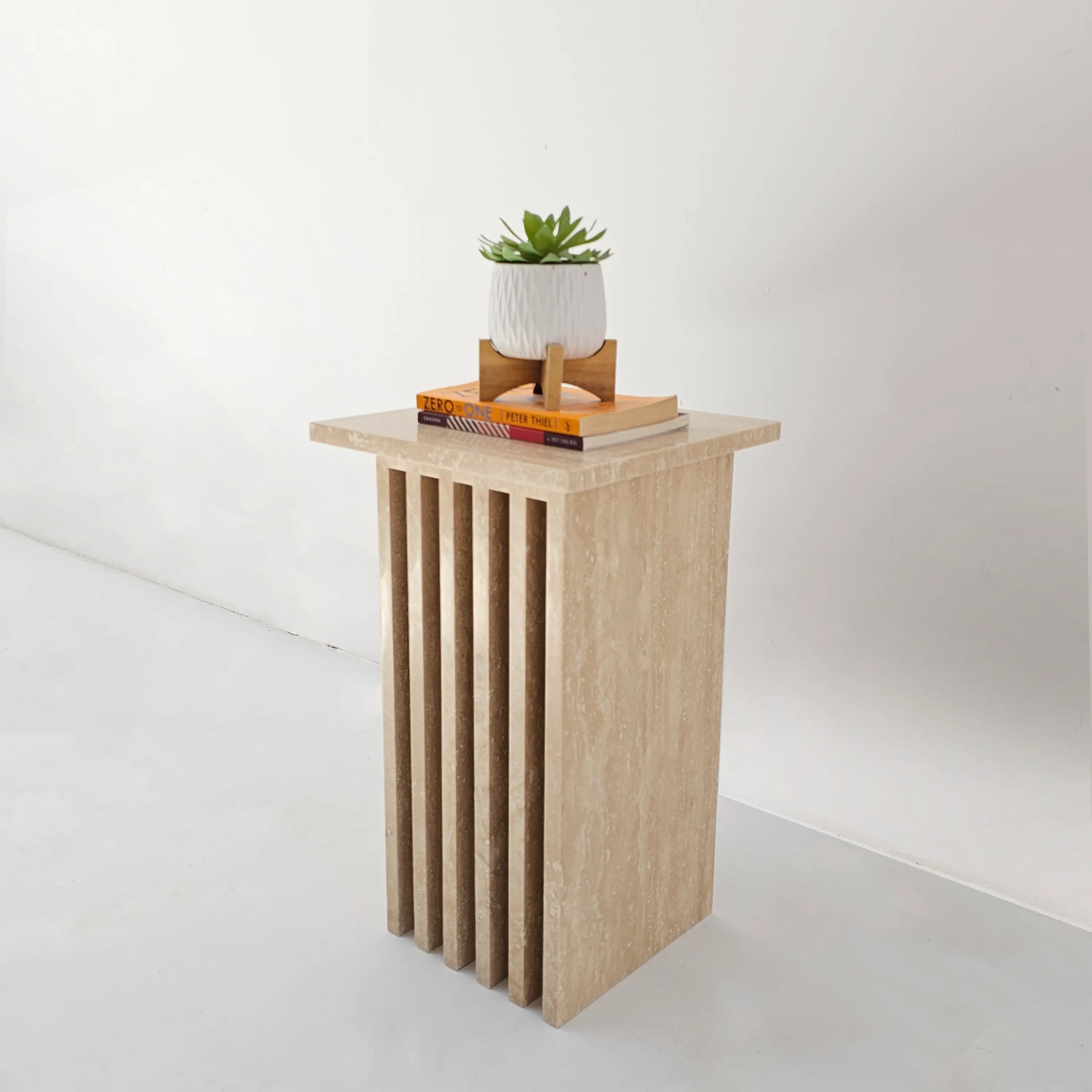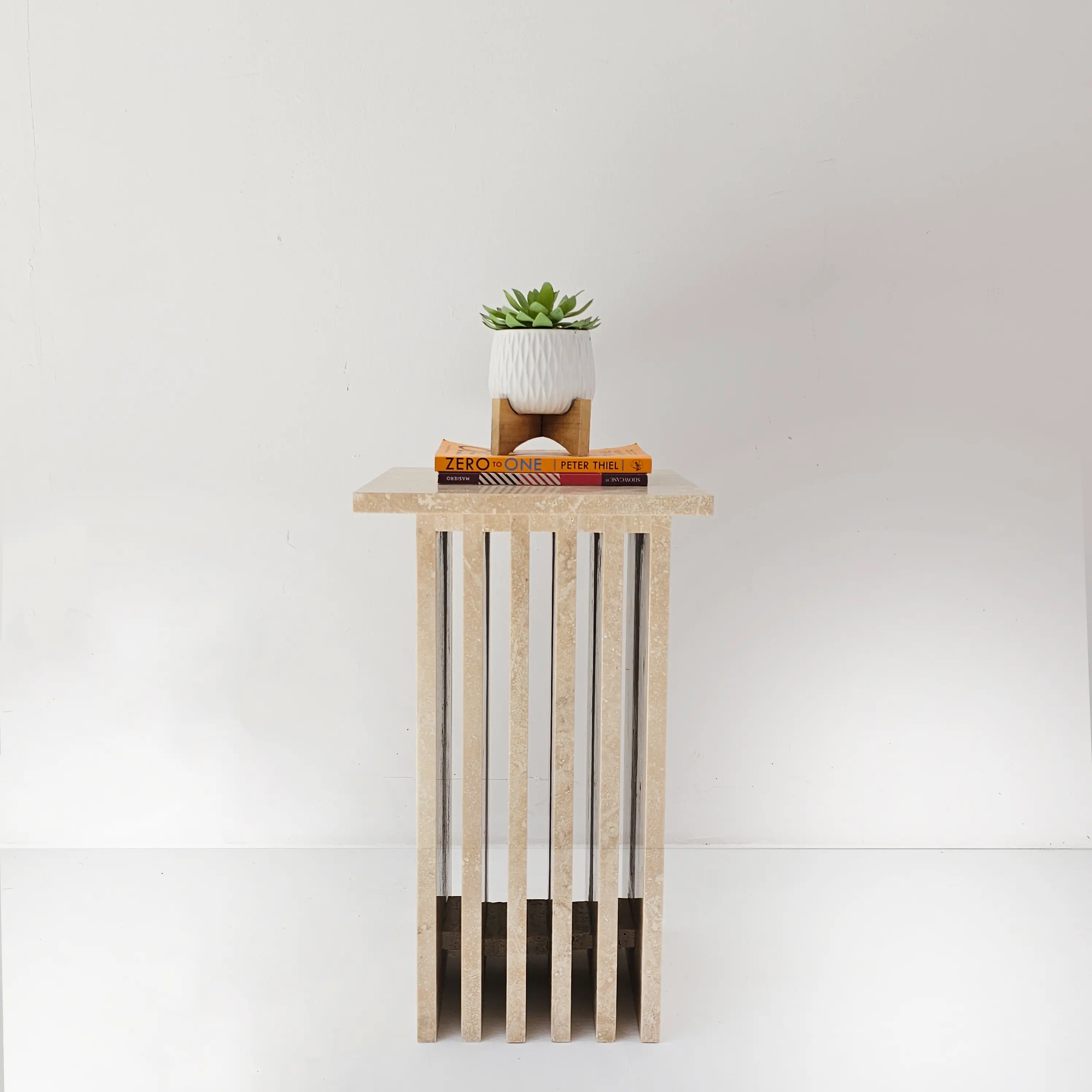 Add a refined statement to your living space with the Roni Side Table, where sculptural design meets timeless marble craftsmanship. Featuring a sleek vertical slat structure and a bold marble finish, this piece effortlessly blends contemporary style with luxurious appeal.