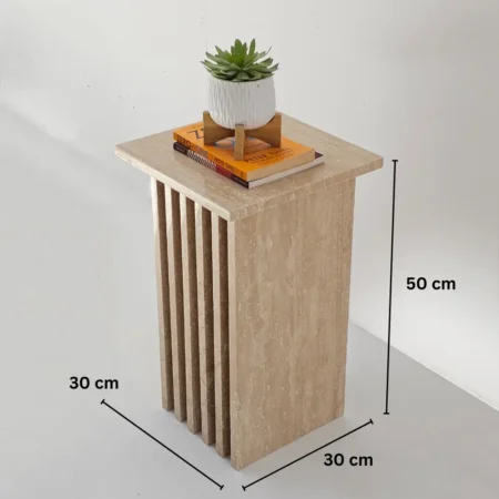 With its compact dimensions (30L × 30W × 50H cm), the Roni Side Table is perfectly sized for versatile use—whether placed beside a sofa, as a bedside companion, or as a decorative pedestal to showcase plants, books, or art pieces.