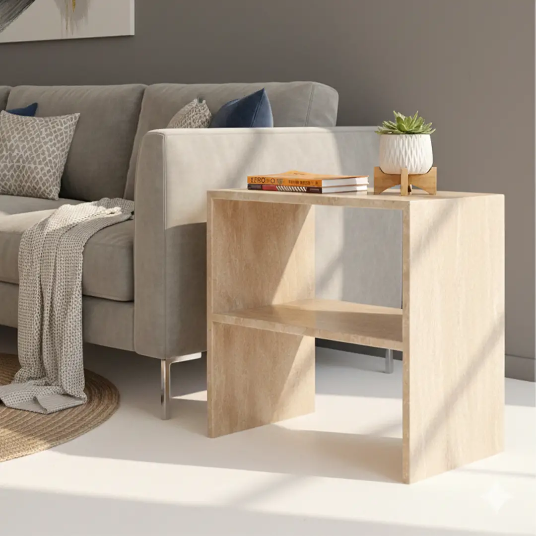 The Shore Side Table is a refined accent piece that brings understated luxury to contemporary interiors. Crafted from premium beige marble with striking brown veins, this elegant table highlights the natural beauty of stone through its soft tones and polished finish. The organic veining ensures that every piece is unique, making it a sophisticated addition to any living space. Designed to complement both modern and classic settings, the Shore Side Table adds warmth, texture, and visual depth wherever it is placed.