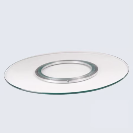 Material: Tempered Glass, Stainless Steel Color: Clear Glass / Black Tinted Glass Shape: Round Tray type: Lazy Susan Special Features: Heat Resistant Recommended uses for product: Dining
