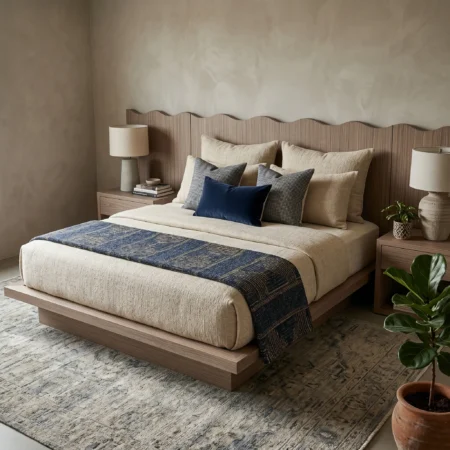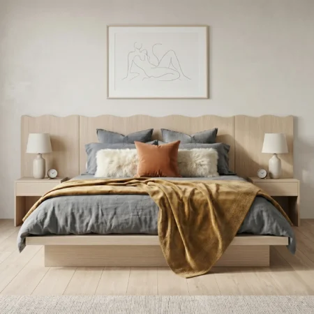 Bring refined texture and modern elegance to your bedroom with the Wave Panel Bed. Designed with a striking headboard featuring soft wave-pattern panel detailing, this bed creates a sophisticated focal point while adding warmth and character to your space. Its clean lines and balanced proportions offer a contemporary look that blends effortlessly with various interior styles.