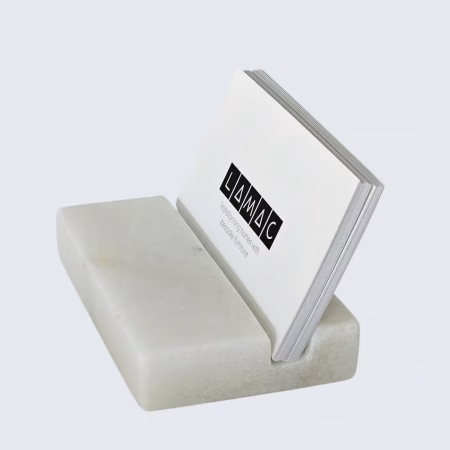 Crafted from authentic Carrara marble, this White Marble Business Card Holder boasts a sleek white background with natural veins, offering a refined and elegant look. It stores up to 25 business cards, functions as a phone holder, and makes a perfect gift for occasions like Secret Santa, birthdays, or corporate events. Handcrafted by artisans at Lamac Crafts in the UAE, this lightweight, space-saving accessory is both practical and stylish. Available individually or as a set of 4 for bulk gifting.