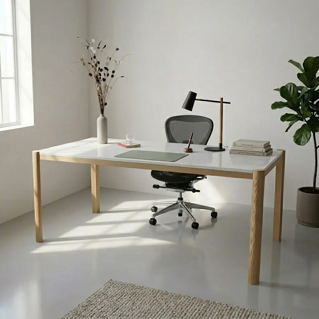 The Zoe Work Desk is an elegant and practical addition to any workspace. Featuring a sleek white terrazzo top paired with rounded oak wood legs, this desk offers a minimalist design that fits seamlessly into modern environments. Whether you’re setting up a home office desk or looking for an upgrade in your professional space, the Zoe Work Desk is the ideal choice. Its contemporary look complements any contemporary office desk arrangement, bringing both style and function to your office setup.