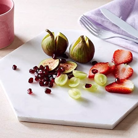 Handcrafted by our skilled artisans at Lamac Crafts, this exquisite marble cutting board is truly one of a kind, with each piece showcasing unique natural variations in the marble. This stylish cutting board doubles as a cheese serving platter, perfect for presenting cheese, fruit, or desserts at your next dinner